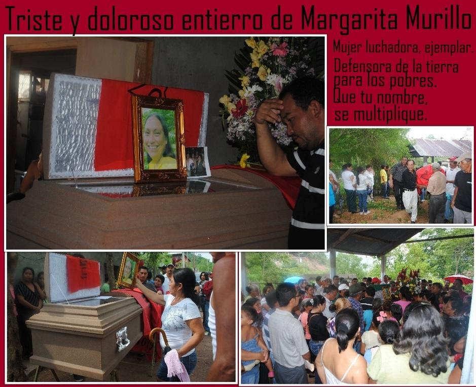 Agosto 29 de 2014.-La Vía Campesina Honduras (LVC), ante la opinión pública nacional e internacional, hace saber que el día 26 de Agosto del 2014 en horas nocturnas fue asesinada nuestra querida compañera de lucha MARGARITA MURILLO, en la comunidad de la montaña denominada El Planón, jurisdicción de la aldea El Venado en el municipio de Villanueva Cortes, donde se encontraba trabajando en una pequeña parcela de tierra.
