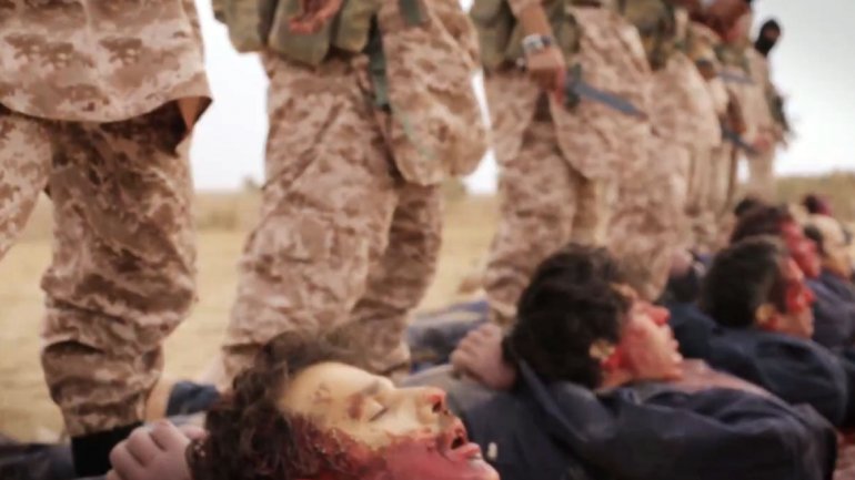 Los soldados, leales a las filas del presidente sirio Bashar al Assad, fueron llevados en fila por los terroristas hasta un campo abierto en medio del desierto. En esta ocasión muestran de manera explícita la ejecución de 18 soldados sirios. Con una edición cuidada que da más dramatismo a la escena y enaltece la figura de los asesinos.
