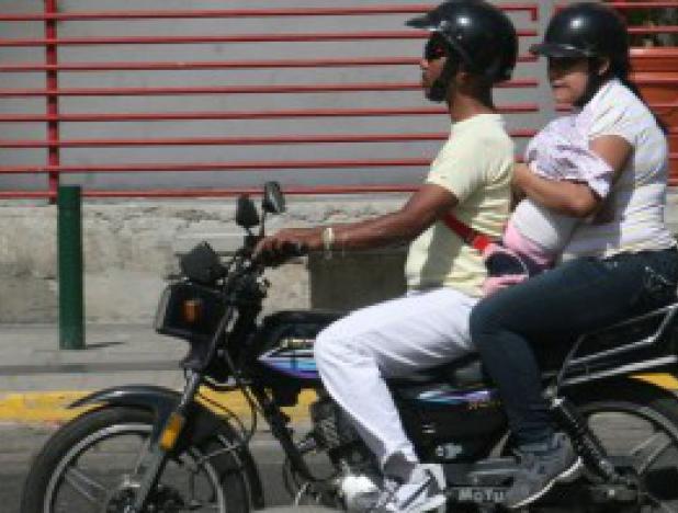 02-06-15.-Tras la puesta en marcha de la campaña “Baja a Los Niños de la Moto” que realizara la Defensoría del Pueblo, la inconsciencia de muchos venezolanos sigue insistiendo, a pesar de conocer los riesgos que conlleva conducir este tipo de transporte, muchos padres y representantes insisten en trasladar a infantes de cualquier edad.