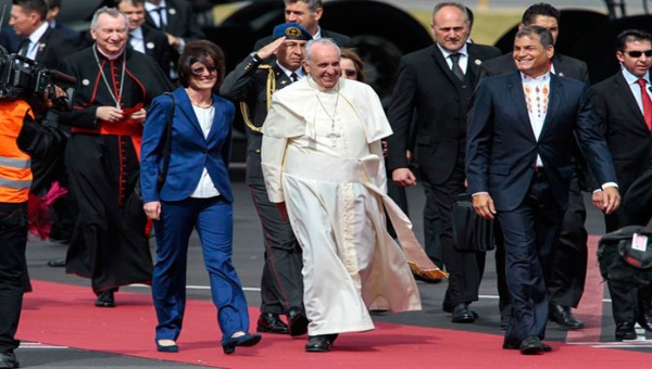 Quito, julio 5 - “Bienvenido Papa Francisco a esta América, a ‘su’ América”, fueron las palabras del presidente Rafael Correa para recibir al Sumo Pontífice en Ecuador, el primer país en su gira por América Latina.