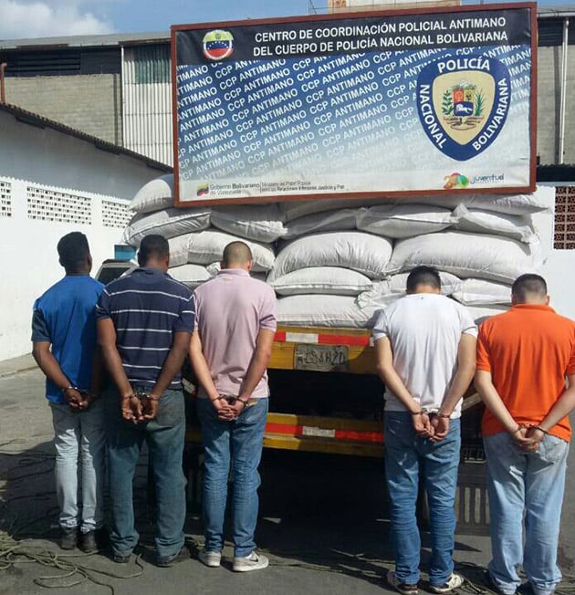 Caracas, mayo 2 - Durante un dispositivo contra la especulación y la guerra económica, la Policía Nacional Bolivariana (PNB), desmanteló una banda dedicada al desvío y contrabando de productos de primera necesidad, en los Antiguos Galpones de Merca Mayor, en la Avenida Intercomunal de la parroquia Antímano, municipio Libertador, en el Cuadrante de Paz Nº 1.
