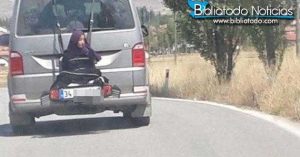 Una escena de evidente irresponsabilidad vial en una carretera de Turquía ha provocado furia generalizada en la Red. Se trata de un conductor que fue grabado viajando a plena luz del día con una niña atada en el portabicicletas de la parte posterior de su furgoneta.