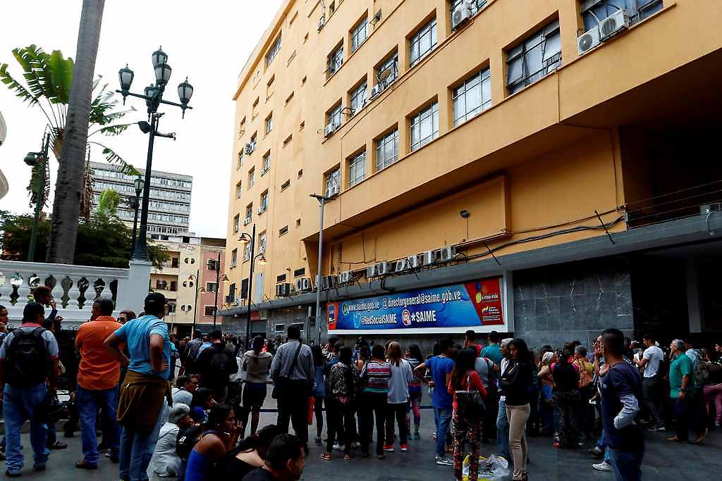 A la sede central la bordea una cola que se extiende a 500 metros en cinco cuadras y pueden llegar más de 1.000 personas a la zona. La mayoría de los usuarios no viven en Caracas. Estos llevan grandes maletas, bolsos de viaje y se quedan en los alrededores del Saime para poder ser atendidos a primera hora de la mañana. Existen diferentes problemas desde caída en flujo alterno, chequeo dactiloscópico, trámites paralizados, dificultad en el pago, hasta transacciones fallidas.A pesar de la demanda, los funcionarios indican que solo atienden 400 personas por día. "Los encargados de contestar dudas tardan hasta una hora en salir a atender al público" una señora indicó que tampoco dan muchos detalles de lo que las personas deben hacer, solo ordenan que se debe hacer la cola desde las 3:00 a.m.