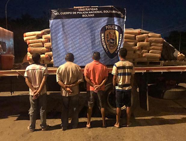 En el lugar resultaron aprehendidos Eulices Chauran (58), Edgar Vera (39), Eliomar Aguilera (26) y Juan Velásquez (23), por el delito de desvío de material estratégico.