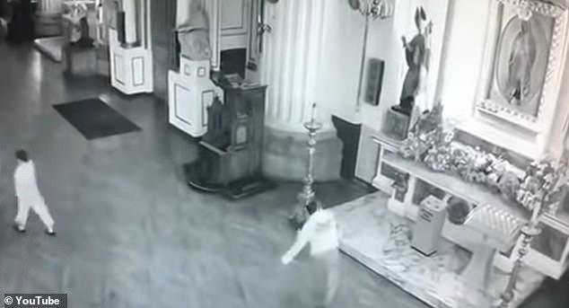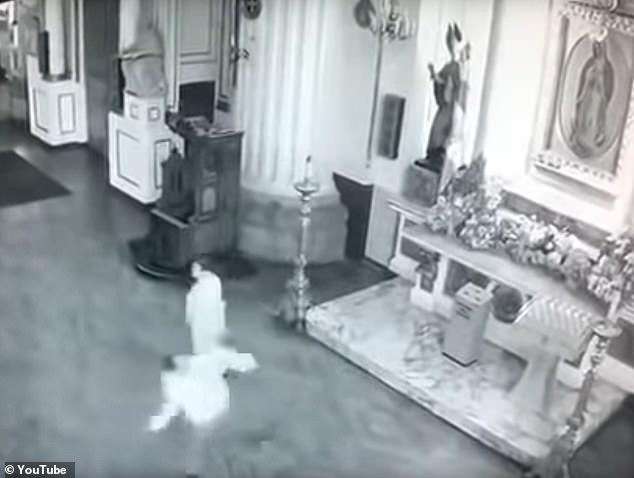 Las cámaras de seguridad de una iglesia captaron el momento exacto en el que un hombre arremetió contra una imagen de la Virgen de Guadalupe arrojándole piedras.