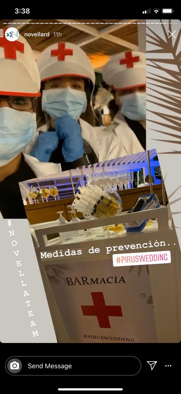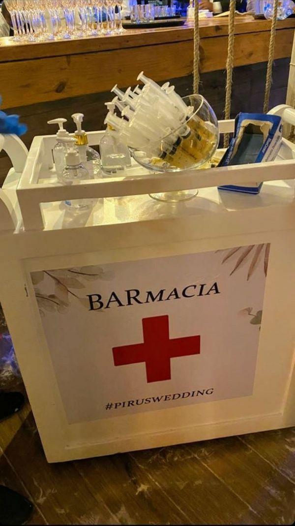 La empresa que organizó la boda, llamada Novella Wedding, le facilitó a los presentes en el lugar un pequeño espacio al cual le colocaron por nombre “Barmacia”. Allí había jeringas con alcohol.