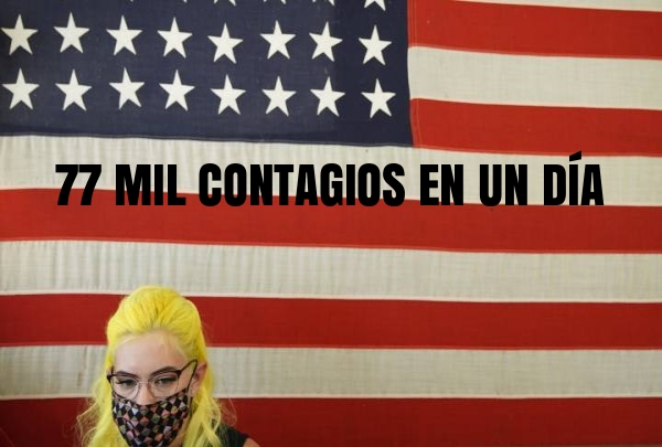 El recuento actual de 77.217 casos supera el récord previo marcado el viernes, cuando las infecciones subieron en 69.070. En junio, los casos aumentaron en una media de 28.000 diarios, según un conteo de Reuters. En julio han crecido en un promedio de 57.625 al día.