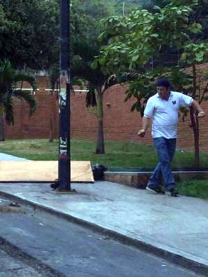 26 Feb. 2014 - A través de @la_iguanatv, los usuarios de la red social Twitter hicieron llegar la imagen de un hombre colocando una guaya asesina en la avenida Francisco Lazo Martí de Santa Mónica, Caracas.