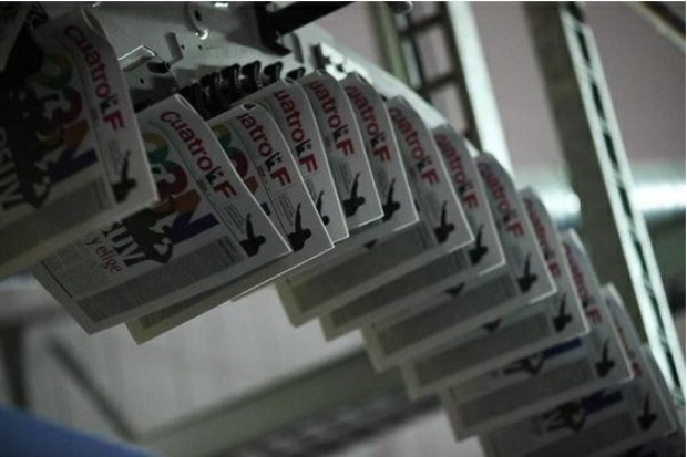 23 de noviembre de 2014.- El presidente Nicolás Maduro visitó los espacios de la imprenta Alfredo Maneiro, ubicada en Caracas, lugar donde recibió el primer ejemplar del naciente periódico Cuatro-F.