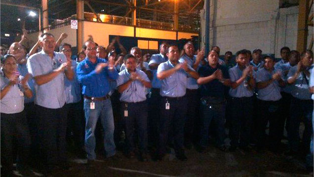 30-07-15.-Trabajadores de PepsiCo, compañía perteneciente a Polar, salieron a protestar la noche de este miércoles debido a una medida del Ejecutivo que le da a la empresa 60 días para desalojar los galpones ubicados en La Yaguara, Caracas.