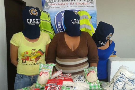 01-07-15.-Tres mujeres fueron detenidas por funcionarios del Cuerpo de Policía Bolivariana del estado Zulia, luego de que agredieran a la cajera de una tienda por departamentos, ubicada en la avenida Fuerzas Armadas, parroquia Juana de Ávila, municipio Maracaibo.