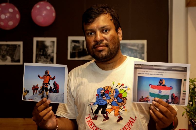 Satyarup Sidhantha, un alpinista de Bangalore, sostiene que la pareja alteró su fotografía para hacer ver que habían hecho cumbre.