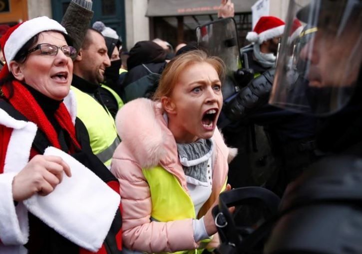 El movimiento de los “chalecos amarillos” comenzó a mediados de noviembre con protestas en las intersecciones y rotondas contra los aumentos de impuestos a los combustibles, pero rápidamente se convirtió en una movilización más amplia contra las políticas económicas de Macron.